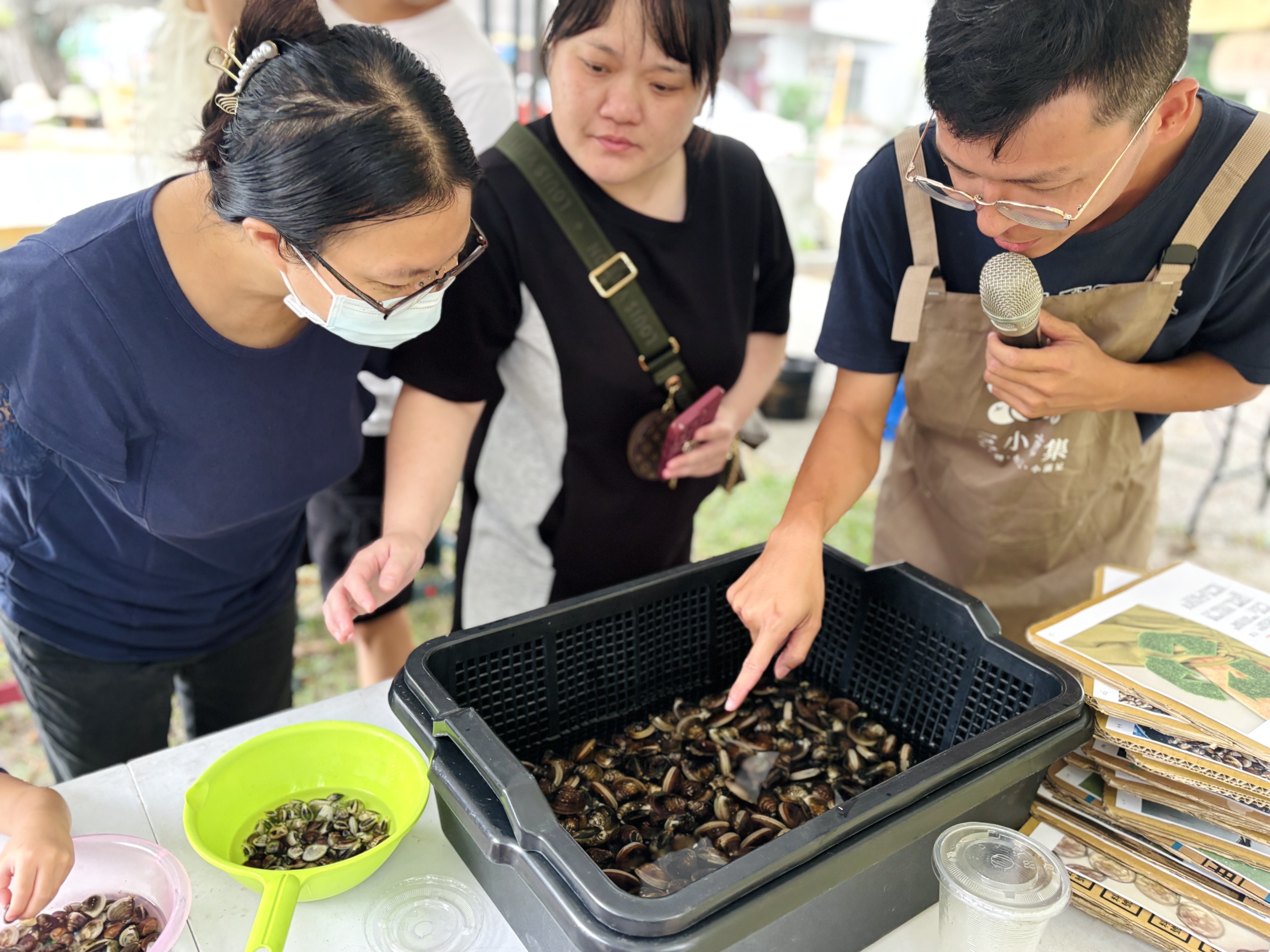 精采的講解結束後,大家能近距離觀察文蛤本尊——從殼紋的紋理、尺寸的差異,逐一揭開牠的外觀與秘密,讓知識不只停留在耳朵,而是真正看得見、摸得著~