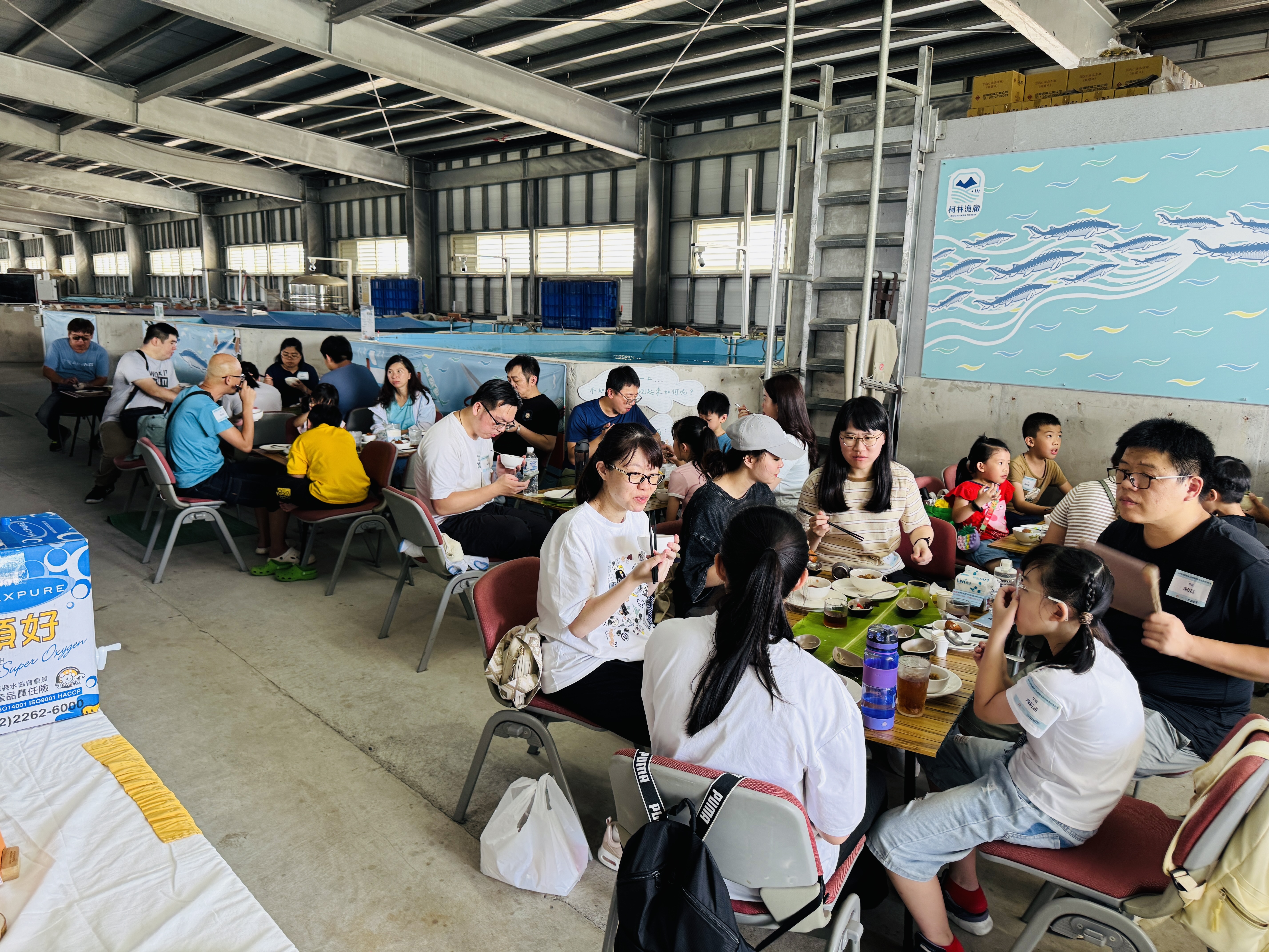活動以漁場導覽拉開序幕,由漁場主人許智越帶領大家進入養殖區,柯林漁廠與一般漁場不同,一座座等身高的魚池,都是專注養殖鱘龍魚、香魚與莫瑞鱈的智慧循環養殖池。漁場採智慧養殖——透過系統化的循環水技術,確保魚群在純淨且受控的環境下成長,除此之外,公司同仁們也一起體驗了「扭蛋餵食」,從互動中理解每一條好魚背後的飼育歷程與永續實踐,體驗漁夫的養殖日常。