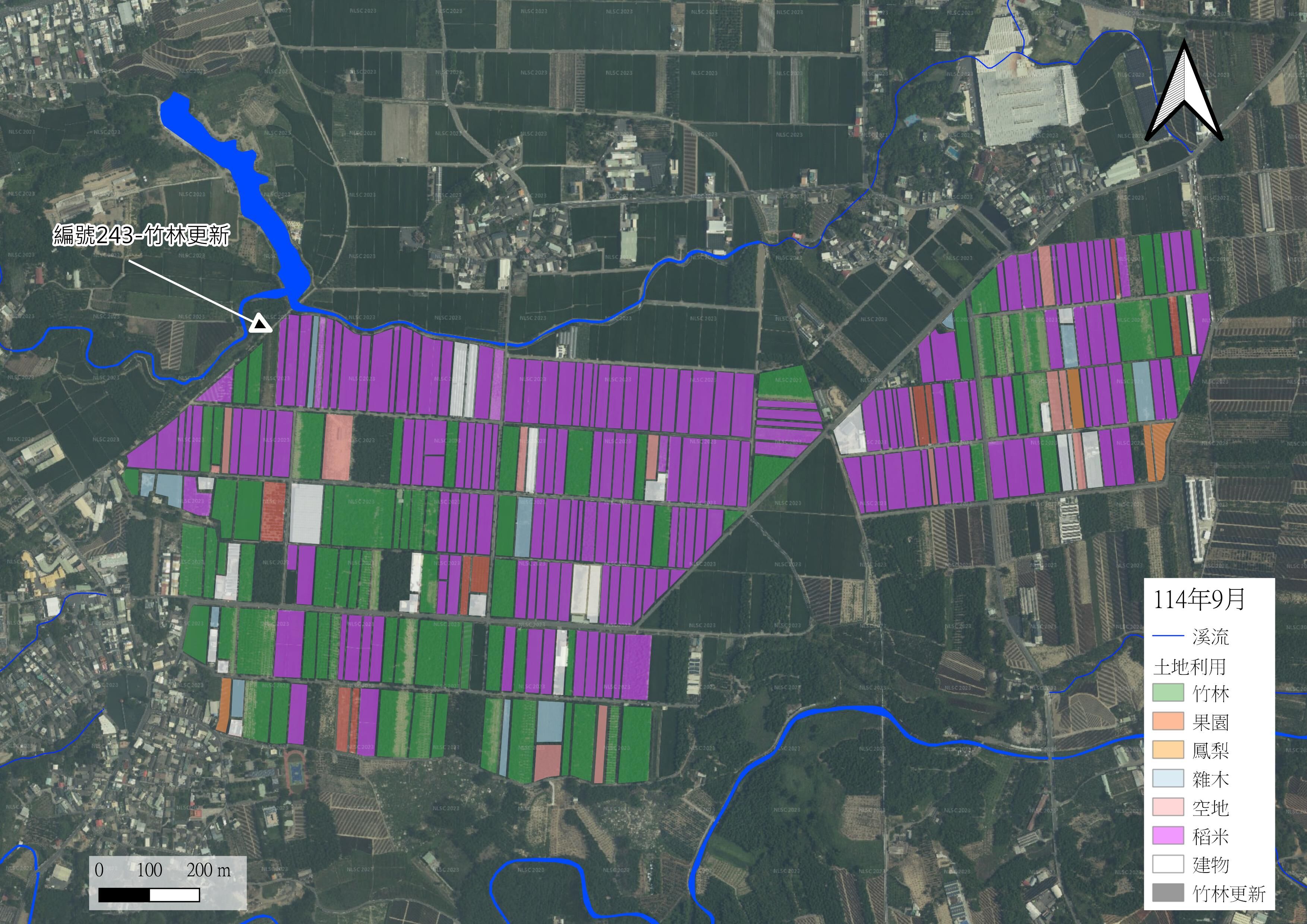 本次調查彙整出完整的調查區域土地利用變化圖,分析稻田、竹林與果園等不同地景對生物分布的影響,未來可作為企業後續評估保育成效與推動友善農業轉型的科學依據。
