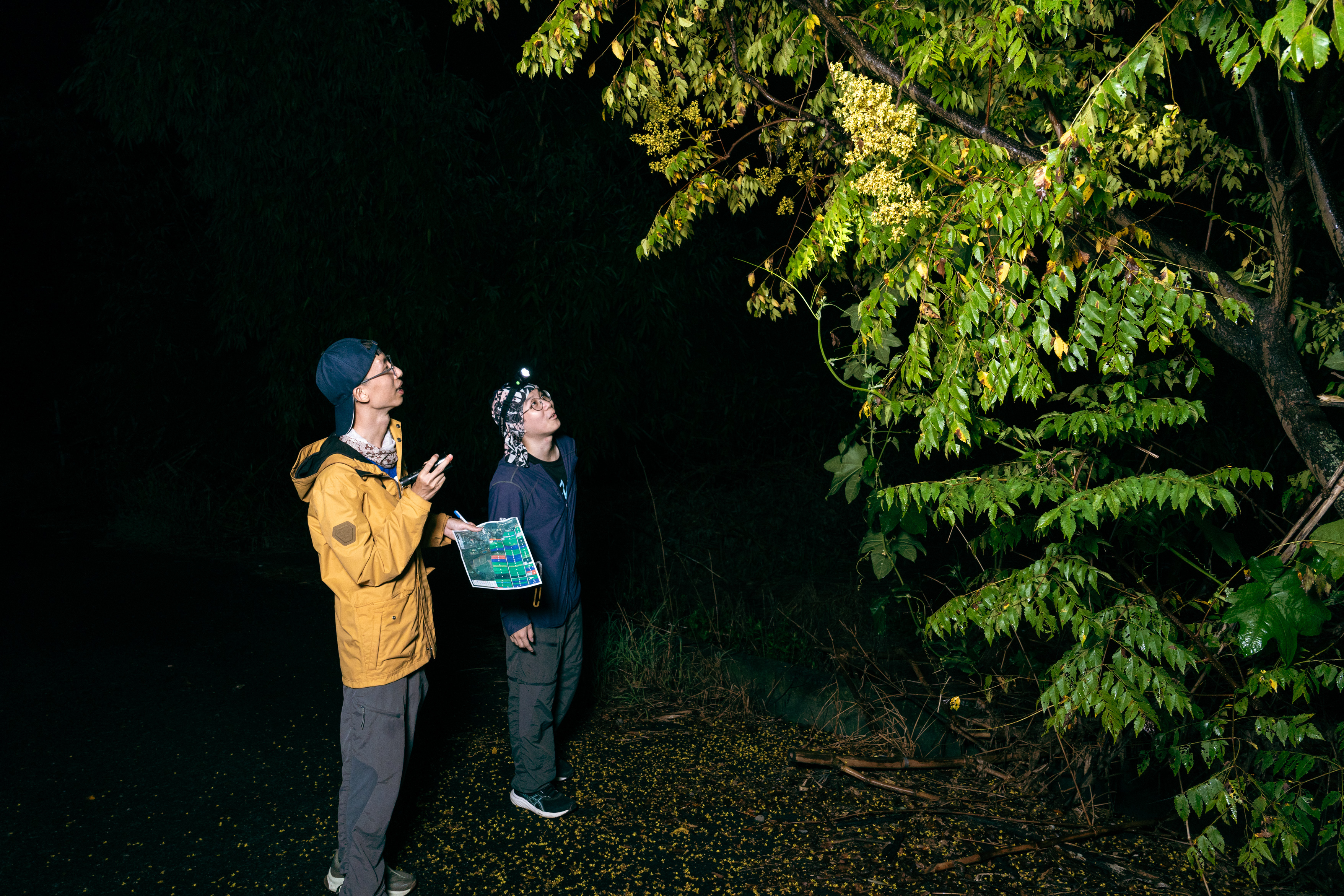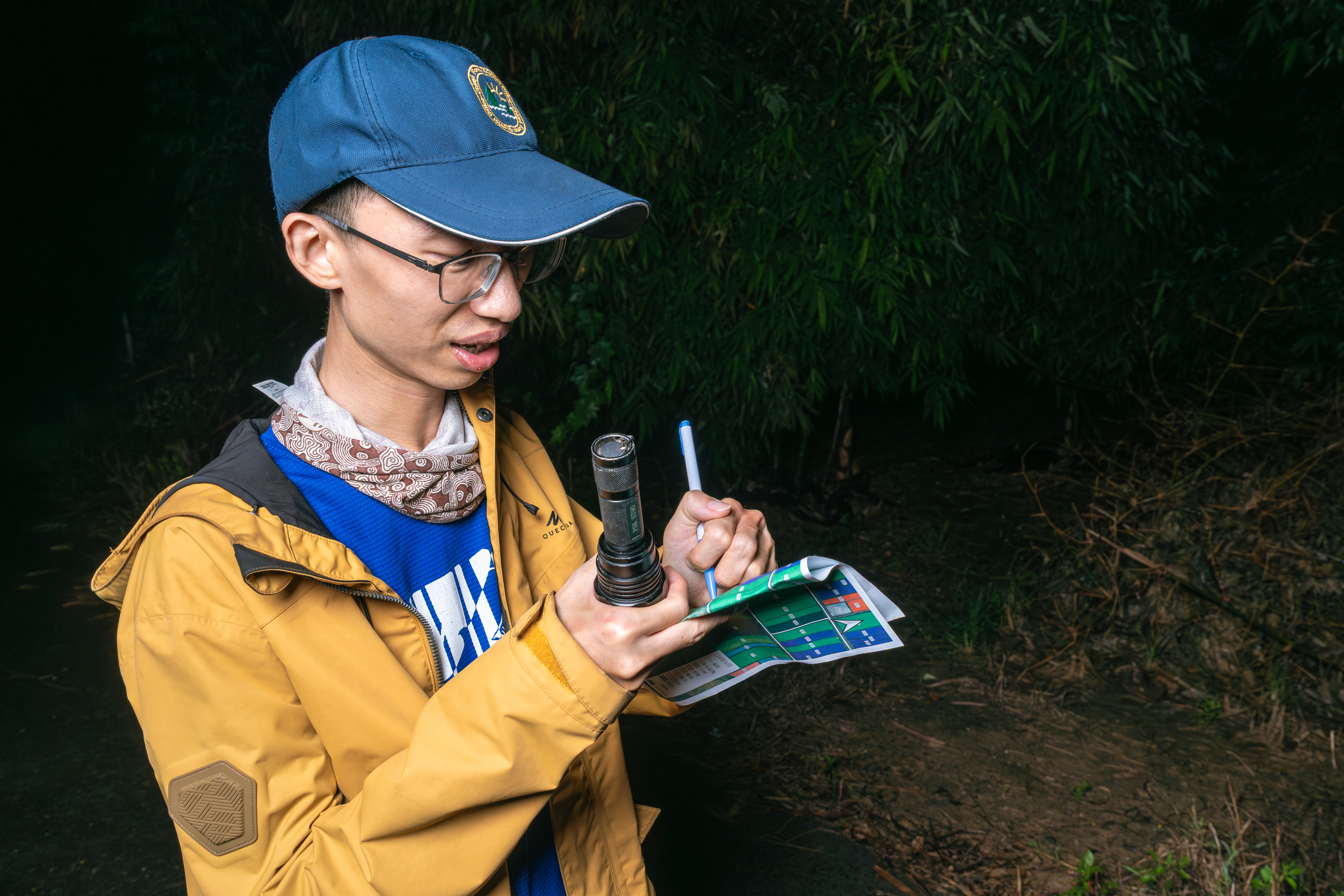 (圖片說明:蛙趣自然團隊於竹林中進行夜間觀測與紀錄 )