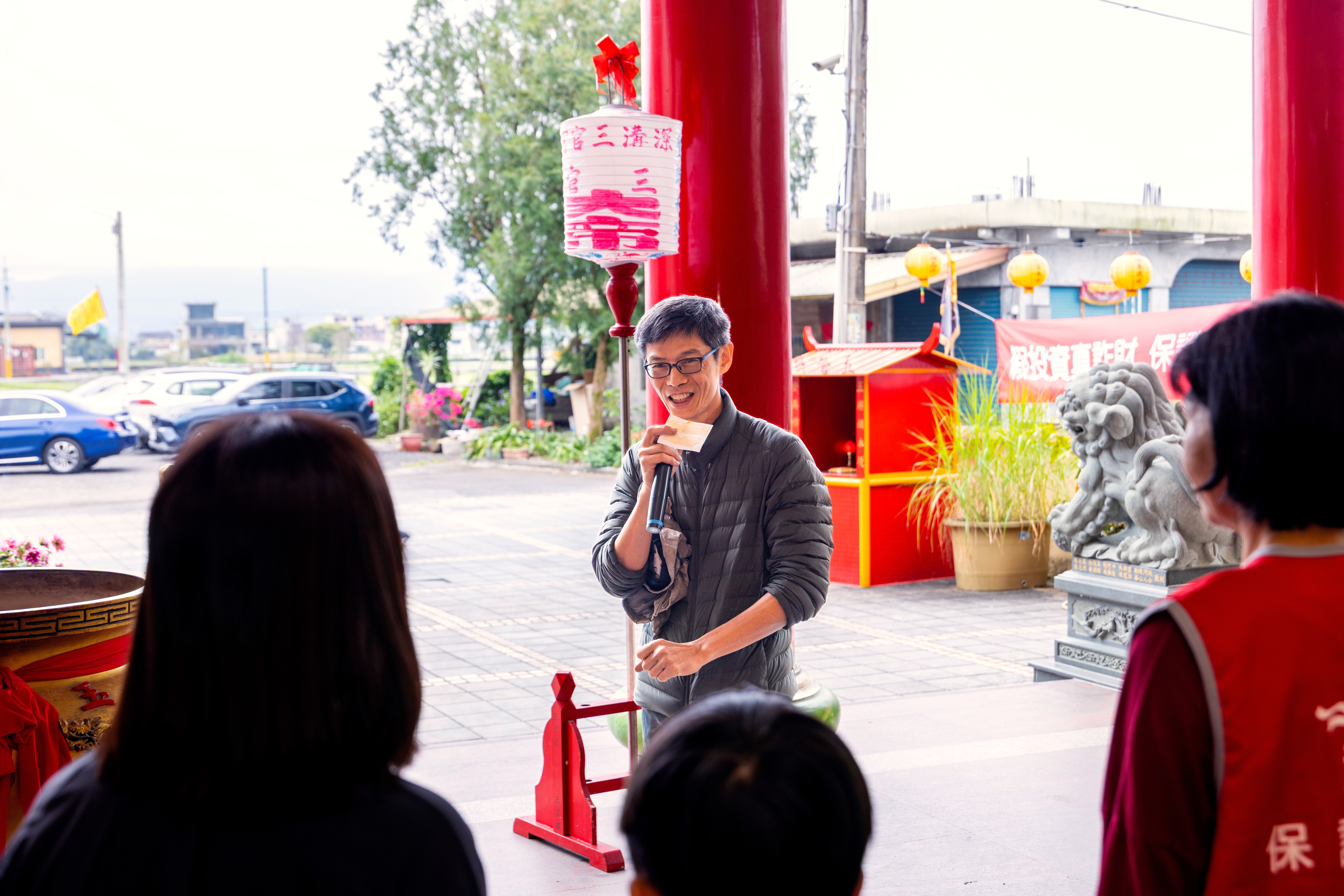慢島生活成立於2019年,由穀東俱樂部發起人賴青松與一群深溝小農與宜蘭在地文創青年共同發起,於宜蘭深溝水源地推動鄉村移居支援服務。以「半農半X」為理念,為懷抱田園夢的都市人開啟一條通往農村的路,也為有心返鄉的人保留一條回家的可能。活動開始前,大家先在深溝三官宮集合,一同進行簡單的祈福儀式,祈求當日活動順利進行,也為即將展開的田間工作帶來一份安心與祝福。
