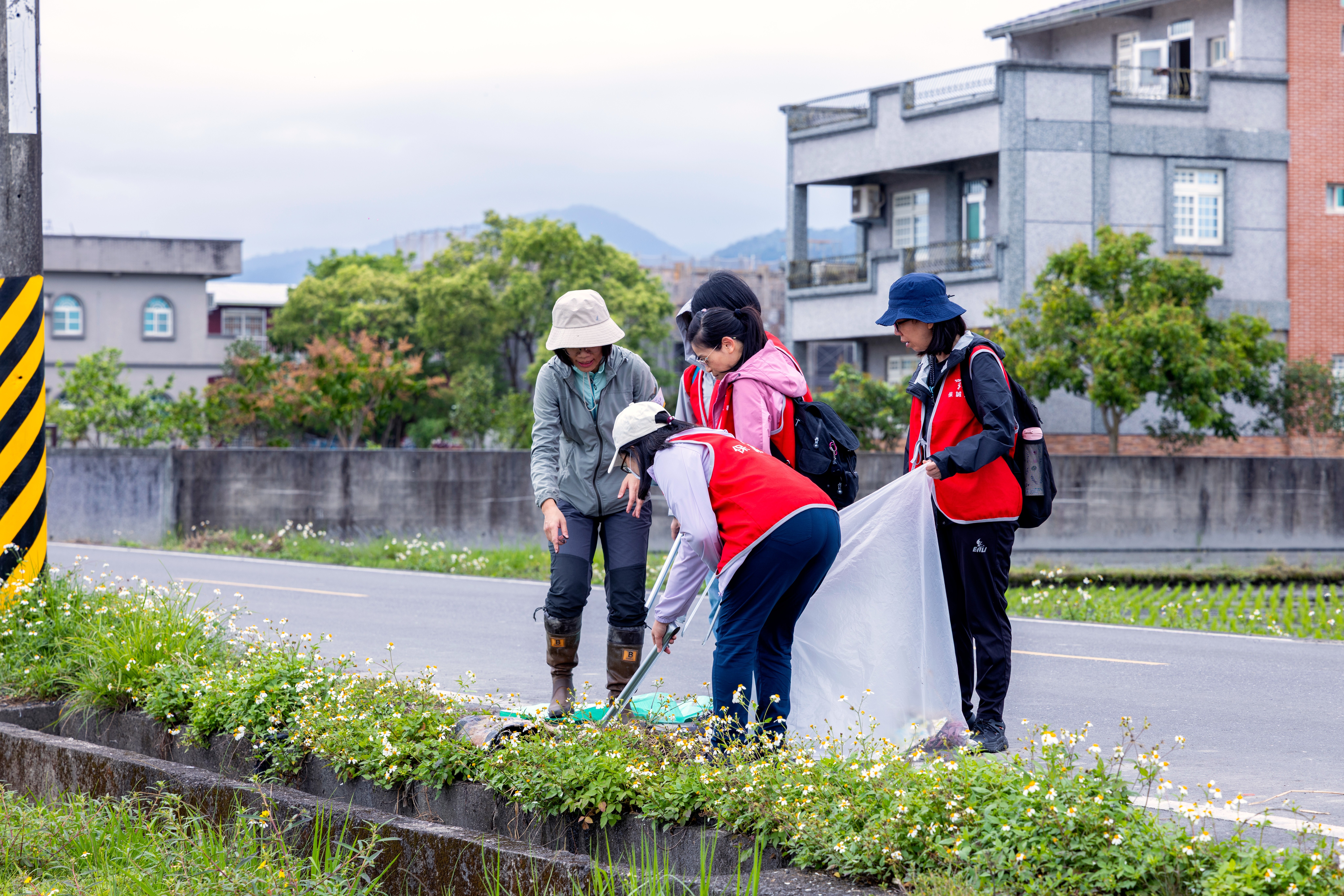 除了田間體驗外,志工們也參與水圳導覽,透過撿拾水圳垃圾與清除田埂雜草,實際投入守護灌溉水源的行動,為環境與生物多樣性盡一份心力。