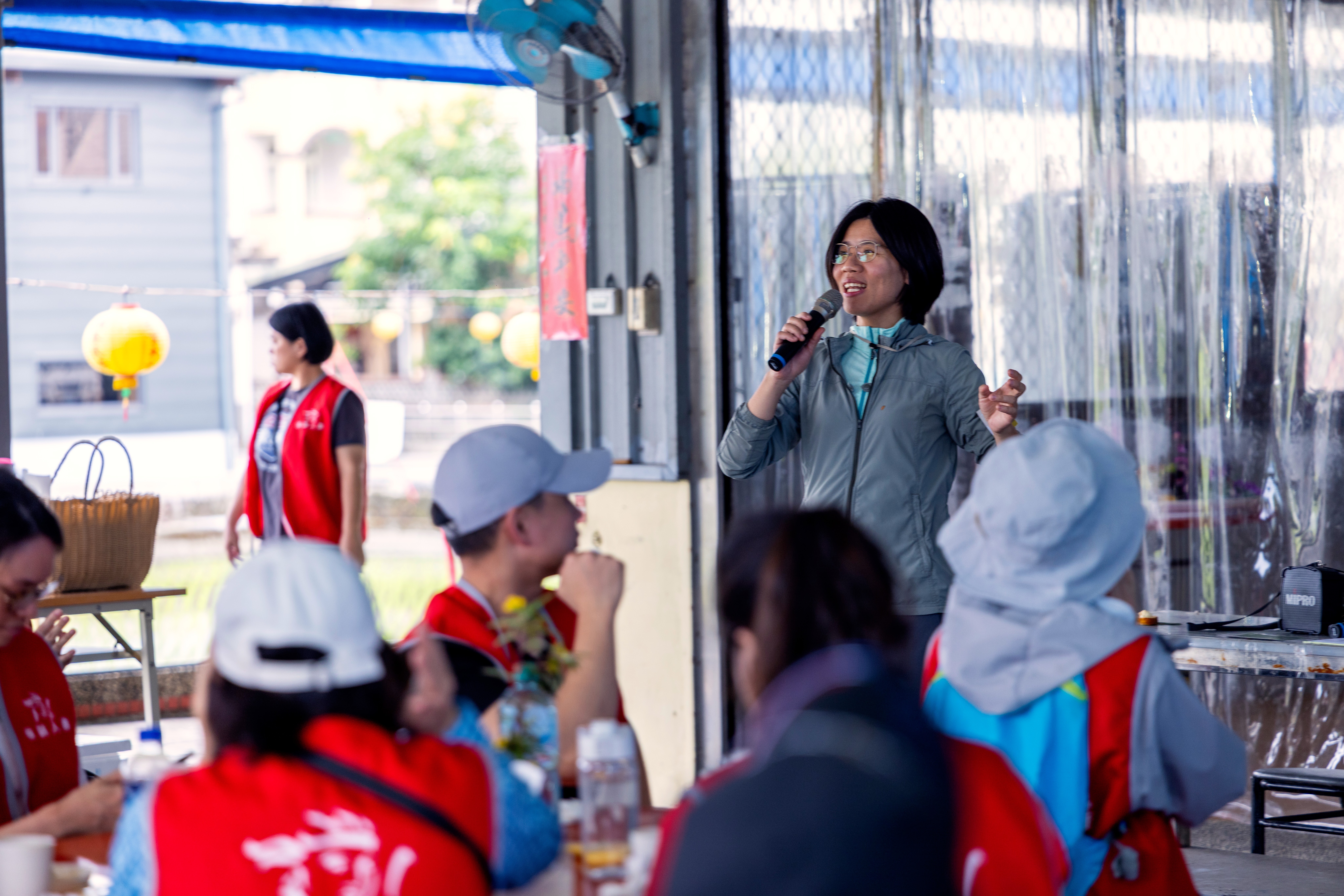 用餐之餘,慢島生活關係人口經營者、同時也是「一坪地主」計畫發起人宋若甄,向大家分享一坪地主的理念與實踐方式。計畫以友善耕作的方式管理一坪農地,為期二十年。以團隊取代個人,讓農務安排更有彈性,也更有機會一棒傳一棒的永續經營。