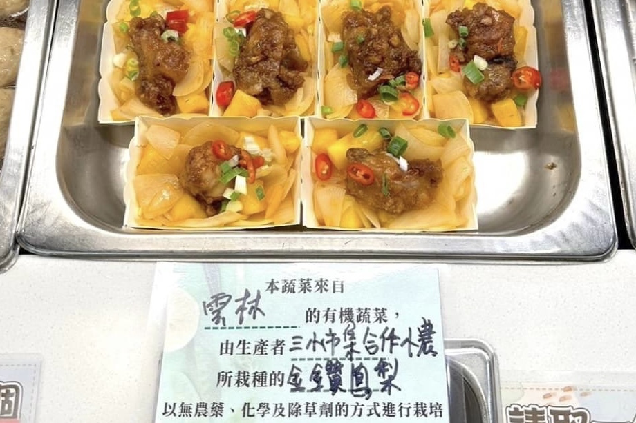 每一顆香甜的鳳梨,其實需要18個月的栽種時間,才能自然熟成。2023年四月,氣候缺水裂果,鳳梨量是五年來新高,價格大崩盤,許多鳳梨果農受到影響。三小市集串連友善耕種的鳳梨生產者,選用「鼓聲果」(外表是扎實的黃,能放較久),由 明基材料BenQ 員工餐廳協助烹飪給員工,並且讓員工認識生產者、認識友善耕種。