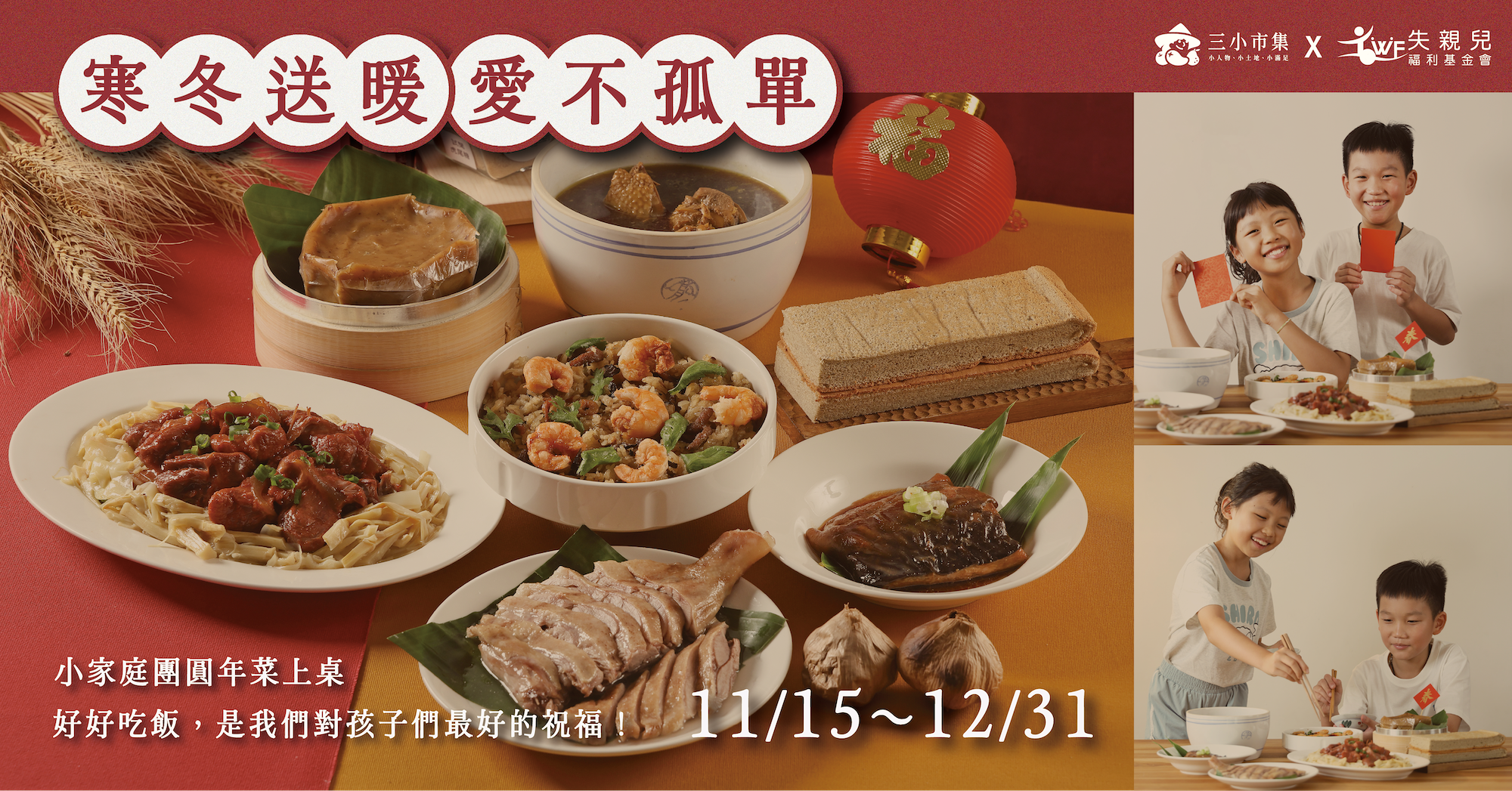 2024年是三小巿集發起公益年菜行動的第四年,有別於以往送餐給長輩的行動,這次我們首度與失親兒基金會合作,我們相信「好好吃飯,就是對孩子最好的祝福」,堅持採用來源最安心的食材,讓孩子們吃的溫馨,更吃得安心。➜專案介紹
