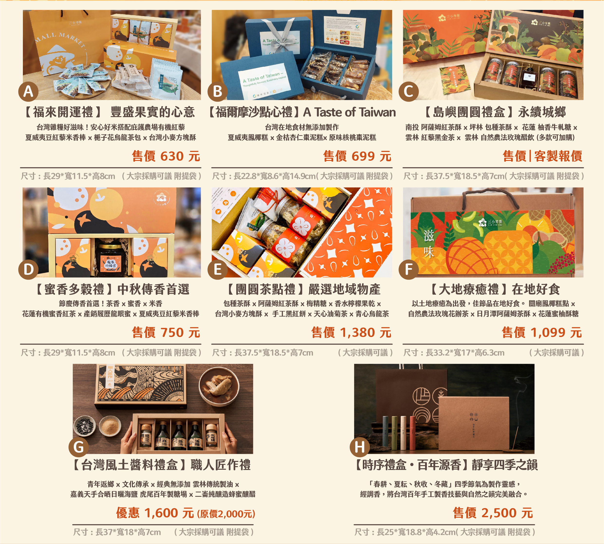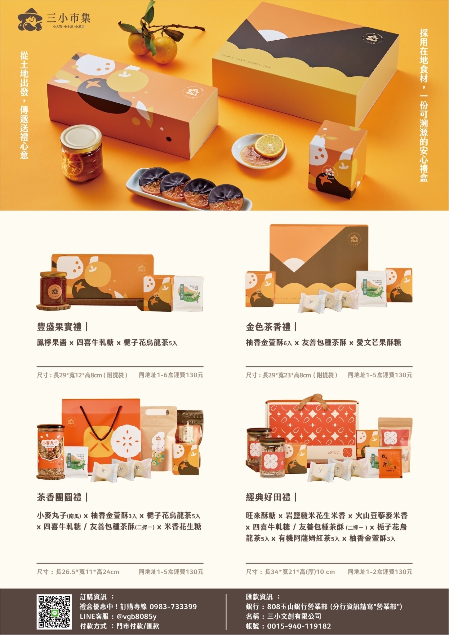 感謝日盛台駿與三小市集共同推出「豐盛島嶼果香禮盒」,作為中秋節的特別禮盒。禮盒精選台灣在地的優質物產,包括「晚崙西亞果醬四喜牛軋糖」、「包種茶酥」、以及「梔子花烏龍茶」,每一口都帶來豐收的喜悅與台灣的美好風味。➜專案介紹