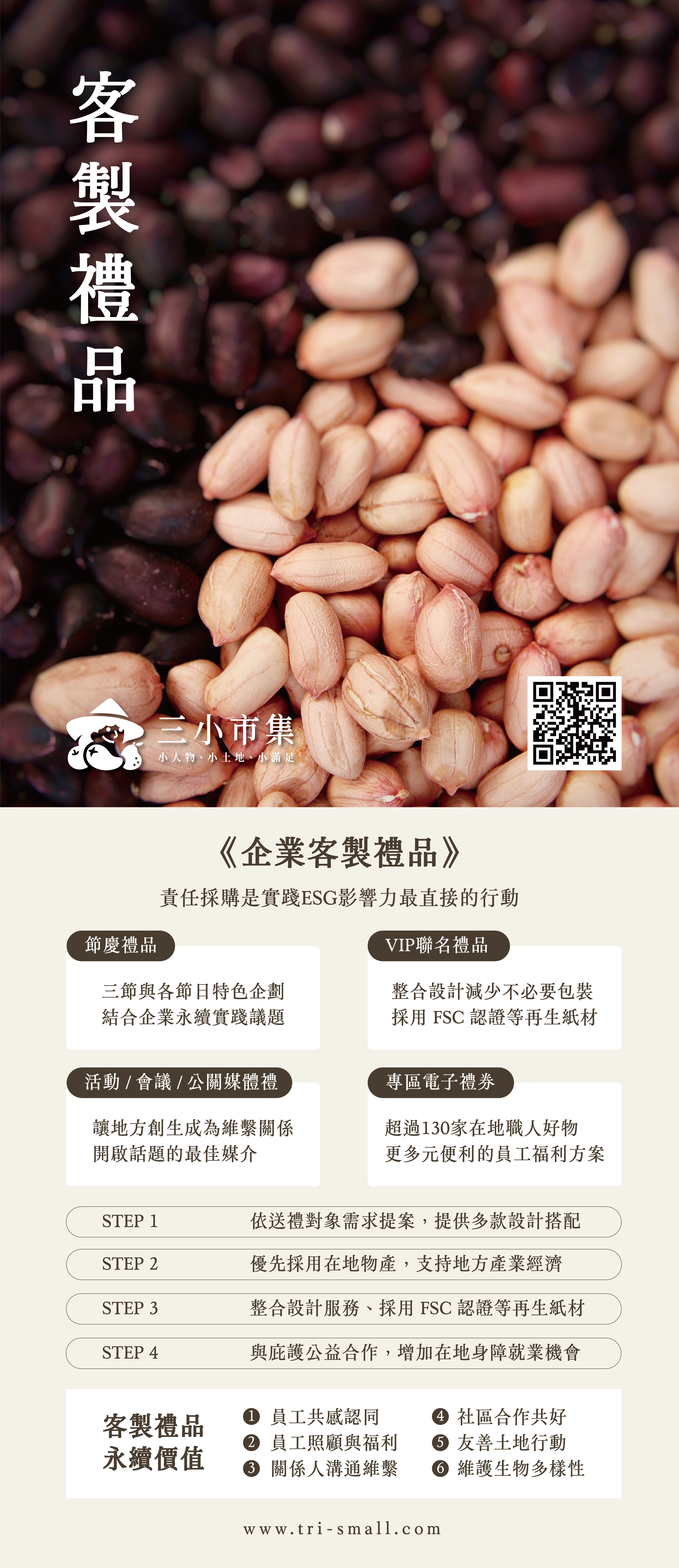 今年三小市集很榮幸再度入選 #經濟部Buyingpower社創良品,我們與120家友善環境的農業生產者合作,可依照公司送禮對象、預算、數量等需求提供客製化服務,亦提供企業志工活動、ESG好田計畫等專案服務➜ 點我看DM