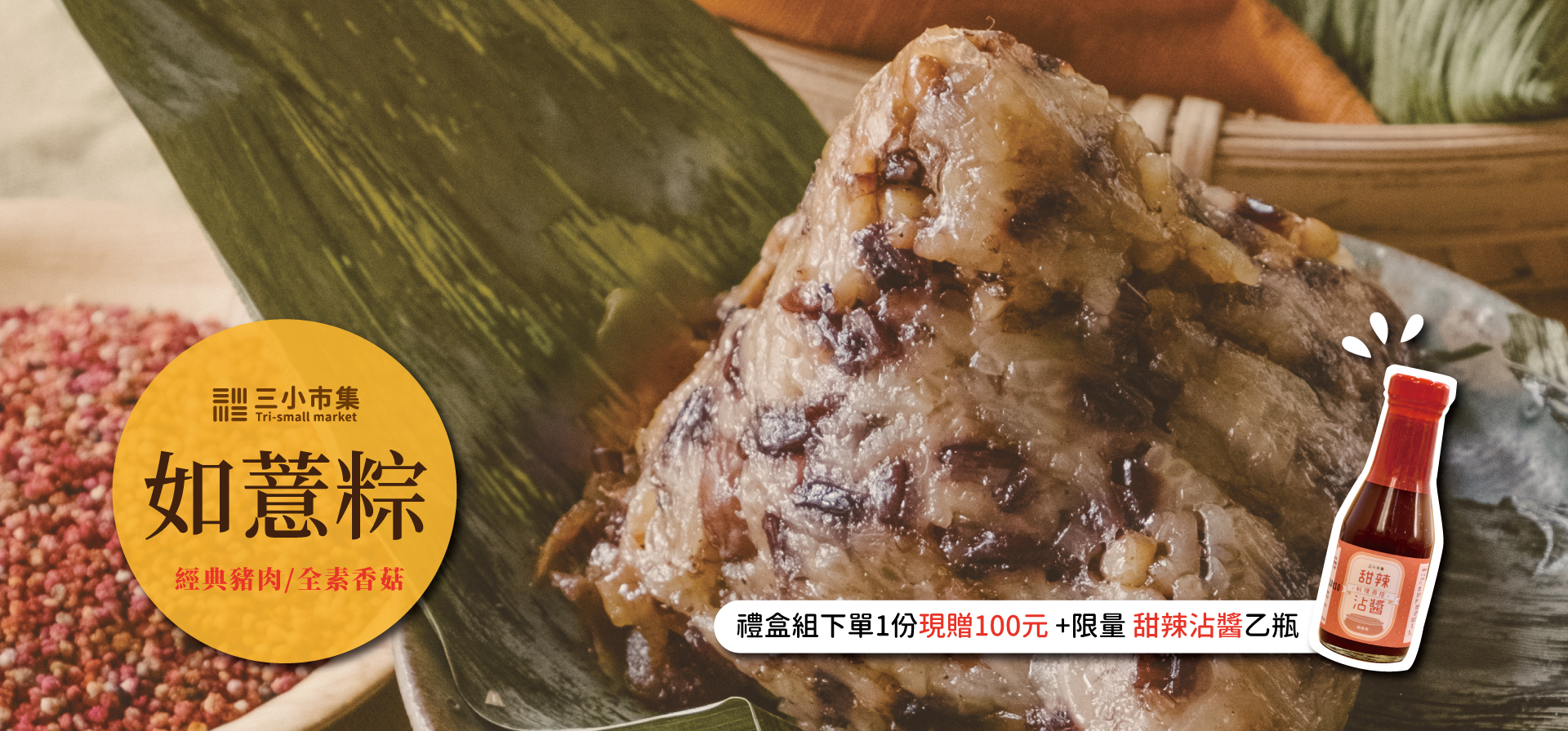 我們運用市集珍貴的在地穀物,開發了「萬紫千紅如薏粽」,採用土庫《在地農夫農場》的紫米、麥寮《月光下友善農場》的小麥,以及斗六《糧莘庇護農場》的有機帶殼紅藜 等。其看似粗糙的外表,其實包裹著更強韌的內在,萬紫千紅為自己,何須輕言放棄?