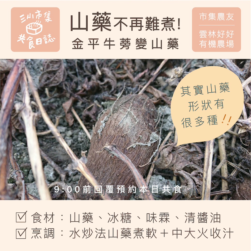 大家都有吃過酸酸甜甜的牛蒡絲吧?原來這料理名為「金平牛蒡」!是日本人金平氏所研發出來的清爽料理,市集大廚阿嘉靈機一動,就來個「金平山藥」吧!把溫大哥的有機山藥一樣切條狀後,就成了一道簡單獨特的開胃菜♫