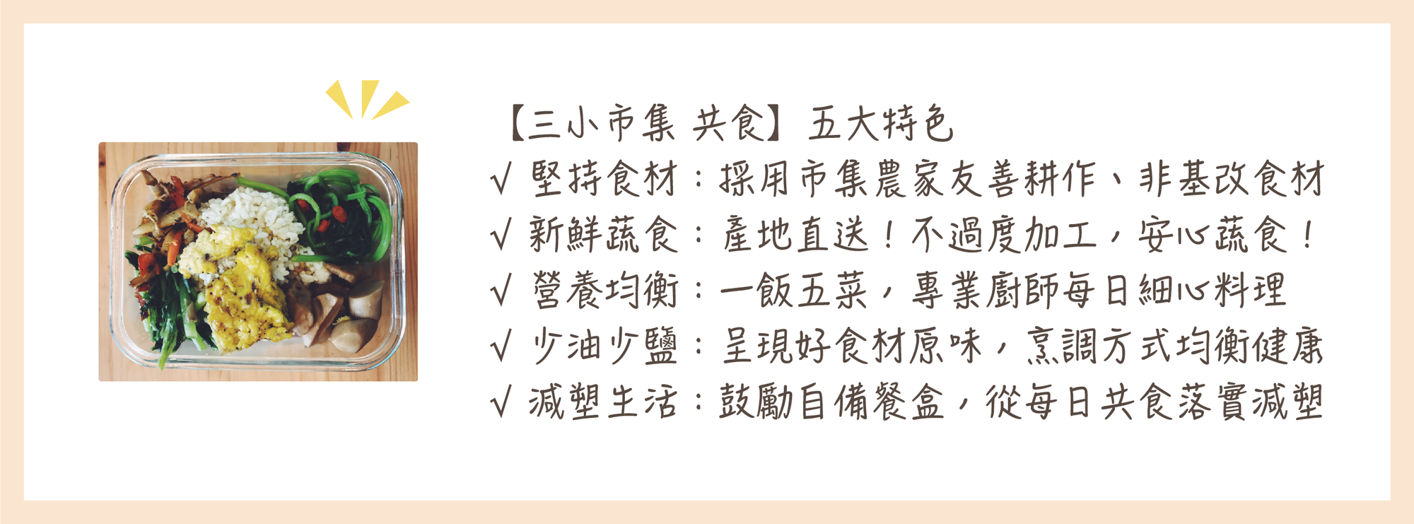 ● 共食採用不鏽鋼便當盒,請自備筷子湯匙等餐具用餐哦!