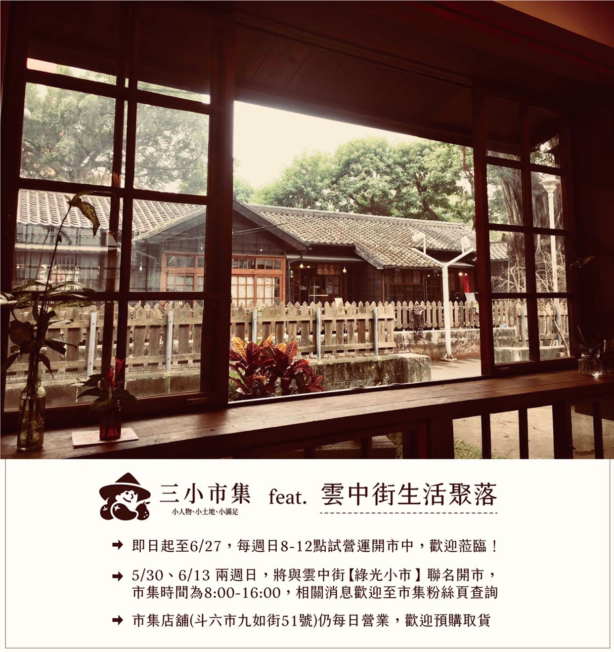 位於雲中街的週日三小市集,將暫停兩週。期間店舖正常營業,滿滿在地食材供應中,歡迎網站預購取貨、全台皆可宅配,在家自煮最安心!