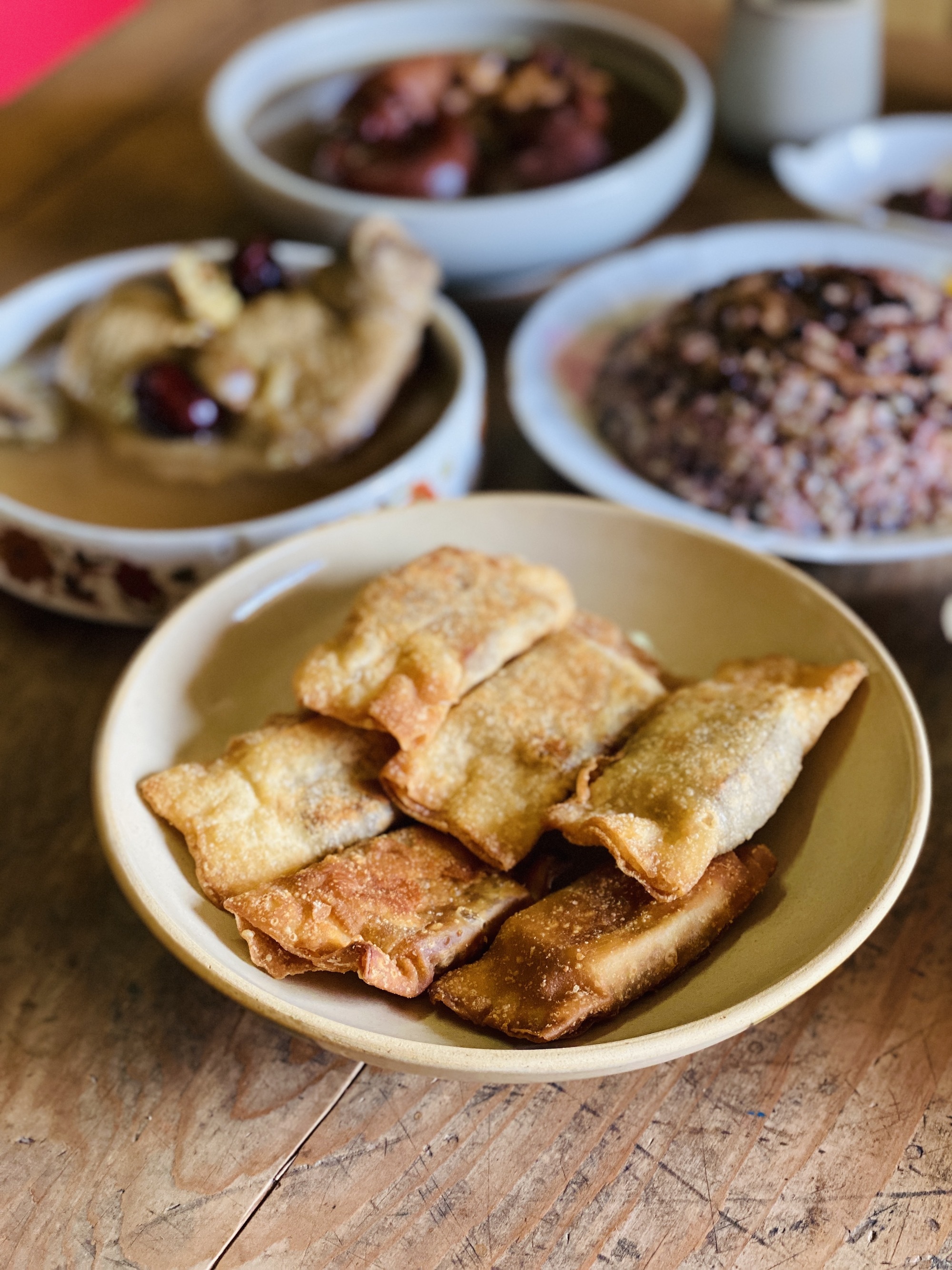 過年吃一塊年糕,象徵來年步步高升!農家自製的天然發酵酒糟酸菜,佐以細緻香甜的虎尾糖提升風味、澎湖辣椒拌炒出微辣口感,包入純米製作無防腐劑與香精添加的原味年糕,在地老店餛飩皮包裹後酥炸成型,一口咬下鹹香微甜風味非常過癮。