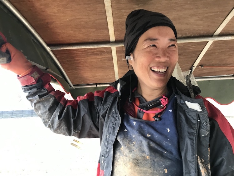 在小鎮裡,每到秋冬時就是花生的地盤,開個車都得特別注意或繞路,小心不能壓到正在曬太陽的花生。日曬時需要仔細地撥動著花生,每幾個小時就要這樣重複地做著相同的動作連續一周,芷宜說:「曬過陽光的花生,也會特別的美味。」