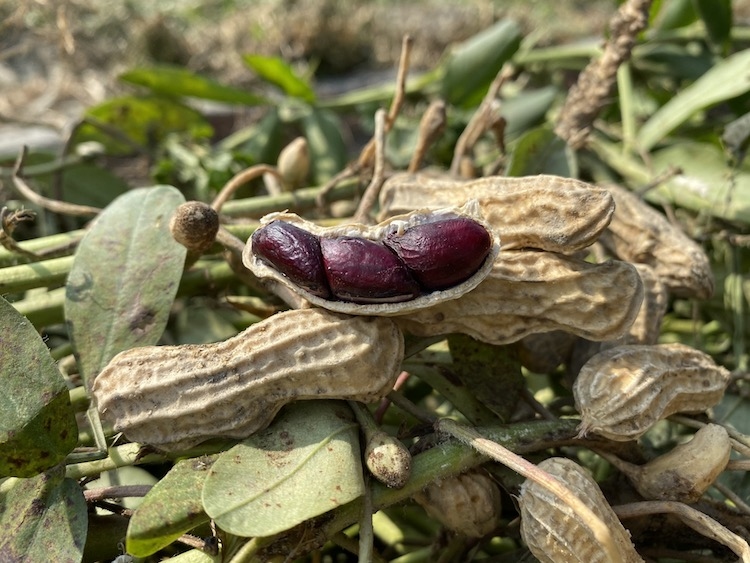 花生一年種植二期,生長期約100天,大約在農曆五至七月採收的稱為「春豆」,多作為種子用;而農曆十月至十二月採收稱為「冬豆」,是豐收的季節。農夫笑著說,花生的個性很內斂,怎麼分辨長大了沒?「要用偷看的。偷偷掀開花生葉,撥開泥土,花生飽滿了就可以採收了」。而芷宜一家就有如小小花生般,持續在這片土地上落地生根、播下更多種子。