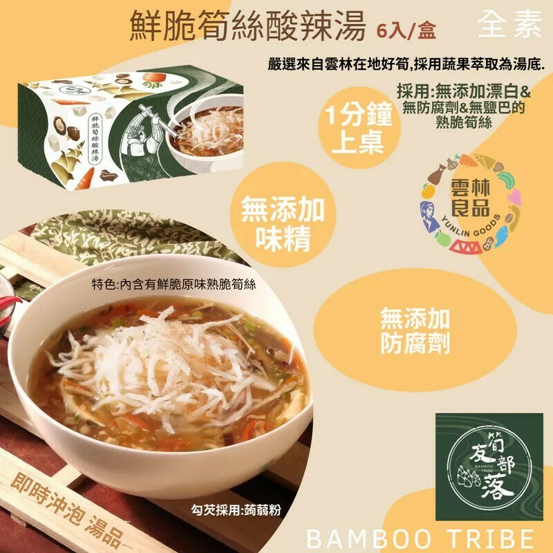 ▶ 鮮脆筍絲酸辣湯 | 獨家首創內附一包熟脆筍絲、酸辣適中,以蒟蒻粉為勾芡原料。