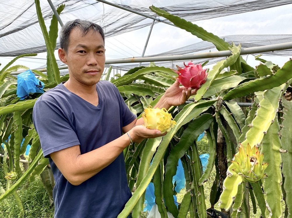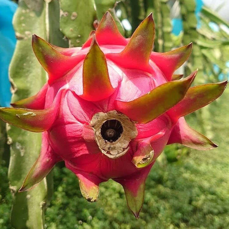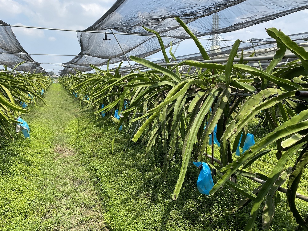 每年七月到十二月,是火龍果採收的季節,為了顧好品質,每一個枝條只留一顆火龍果,雖然偶而還是會因蟲害的關係,讓外皮不美麗,但並不影響風味。