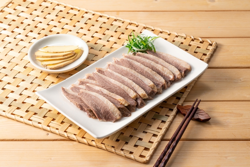 ▶ 鹽水鵝胸|以薑、蔥、酒加上傳統工法細細悶煮,保留鵝肉最純粹的鮮甜、皮Q肉嫩鮮美多汁。