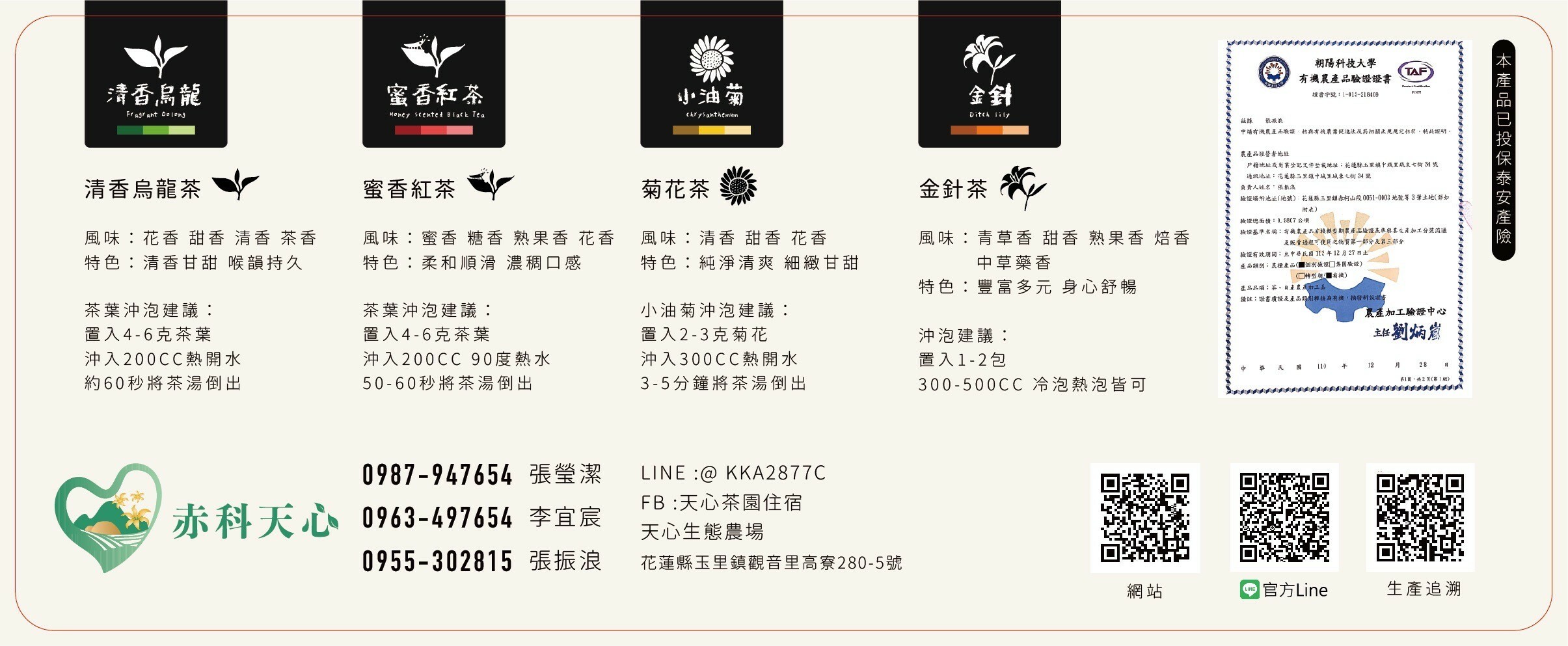 蜜香紅茶、烏龍茶、油菊花茶、金針養生茶各四包,共16包附手提袋