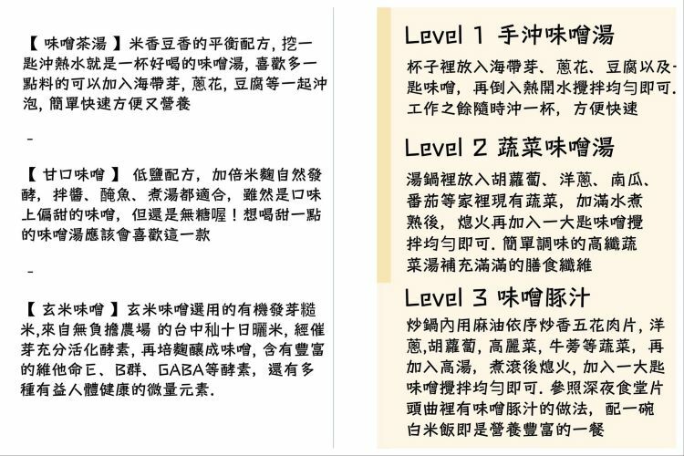 採用台灣本土友善耕種的稻米、黃豆及日曬海鹽釀造而成,遵循古法手工釀造,經長時間天然發酵所產生的甘甜,簡單料理就是美味